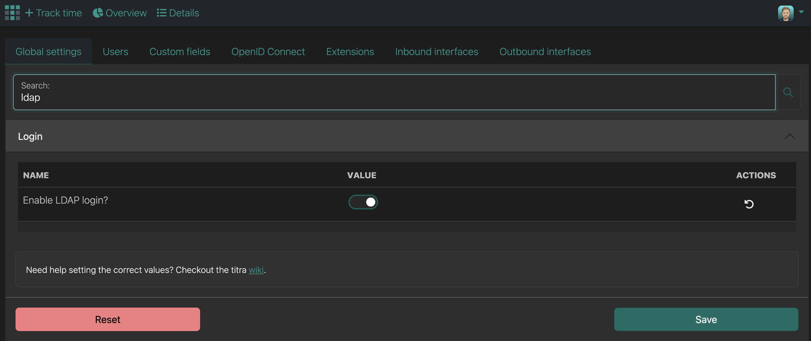 After all environment variables are set, the last step is to enable the LDAP login in the Administration > Global settings page:
